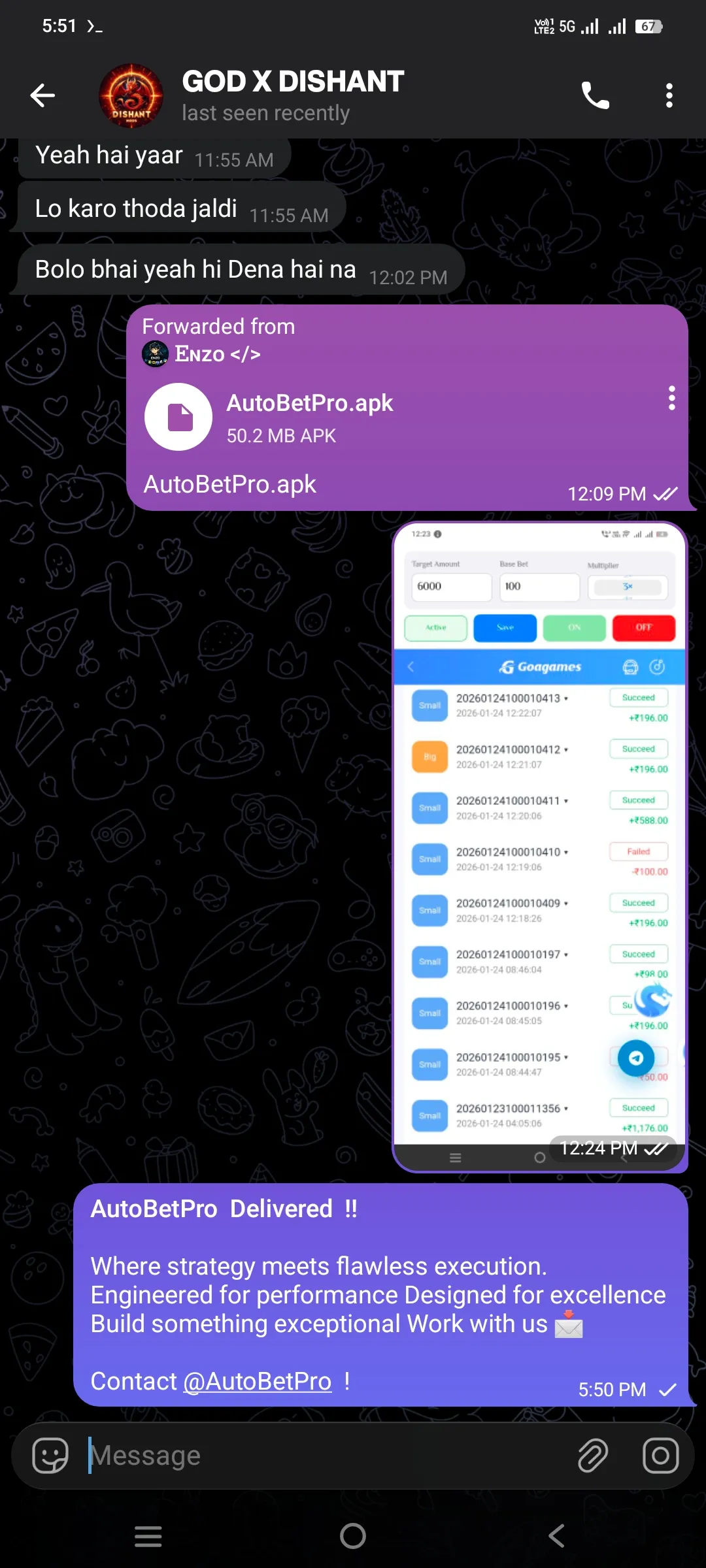 Introducing AutoBetPro, the ultimate automated betting solution. Powered by advanced AI predictions and real-time analysis , our app doesn't just bet—it wins smart. Experience intelligent automation with martingale strategy, target-based betting, and seamless background operation.